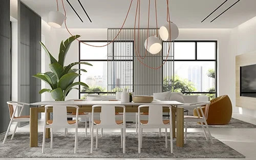 Large windows and wide patio doors draw in natural light throughout the day and create a strong connection to the outdoors.